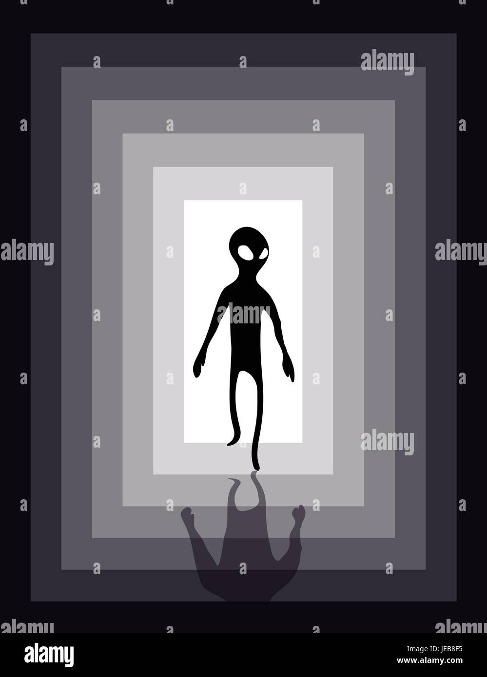 Alien Humanoid And A Light In The End Of A Tunnel Vector Illustration Image Of Extraterrestrial Intelligence Suitable For T Shirt Print Or Web Arti Stock Vector Image Art Alamy